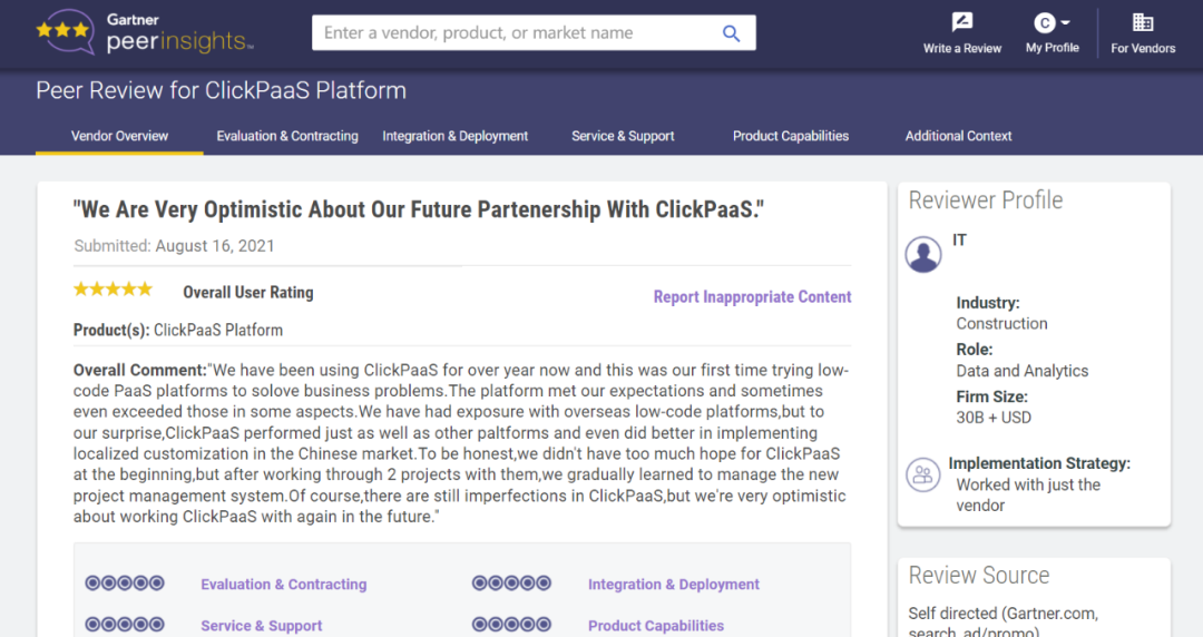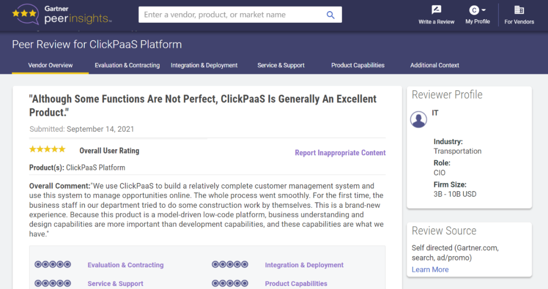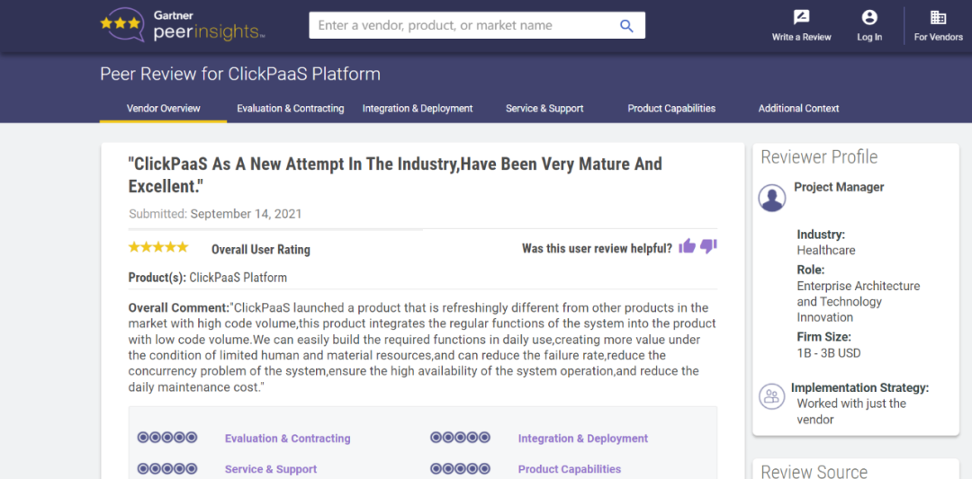 Tips:::::::【Peer Insights】——用户对企业IT产品和服务发布真实评价的平台。。。。。。。。。。。。。。目前已有355个市场,,,,255,000条经过验证的评价。。。。。。。。。。每一条评价Gartner会针对参评企业营收规模及参评人员信息做验证、、、、、、、、、、、、评价内容做多维核实。。。。。。。。。。